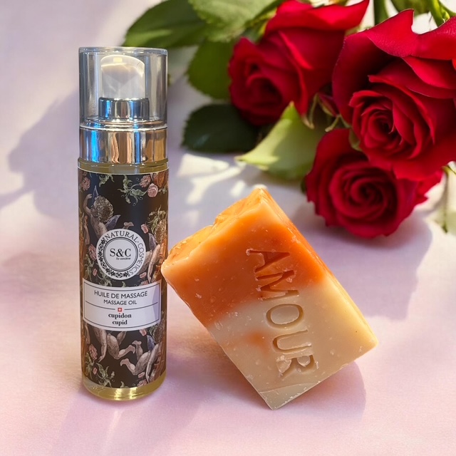 Les huiles de massage nourrissent la peau et invitent à la relaxation, tandis que le savon Amour apporte une touche de tendresse et de poésie au quotidien.